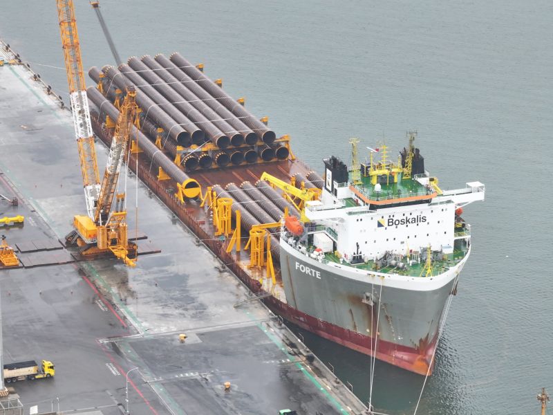 For the development of the 294.5 MW offshore wind farm TPC2, Boka’s semi-submersible heavy transport vessel Forte transports twenty pinpiles for its first voyage.