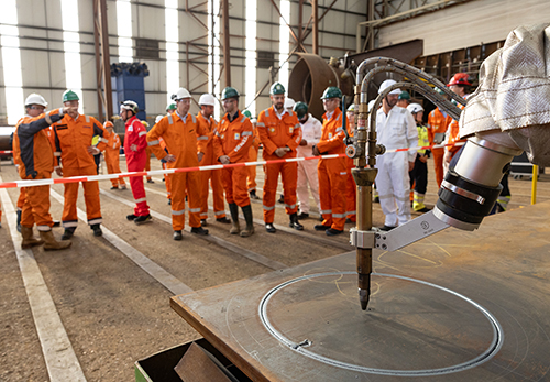 The first steel cut at the Heerema Fabrication Group shipyard in Vlissingen officially marked the start of construction of the jacket for the IJmuiden Ver Beta offshore platform.