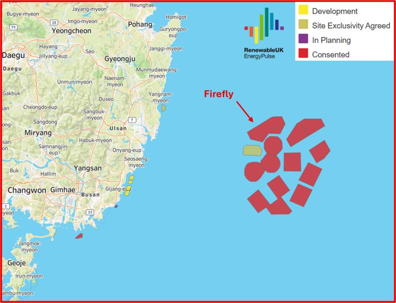 Equinor’s 750MW Firefly (Bandibuli) floating wind farm off Ulsan, South Korea, received a Renewable Energy Certificate (REC) award in 2024, securing government-backed financial support.