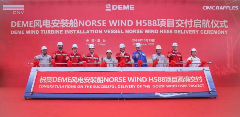 On October 15, CIMC Raffles, a subsidiary of CIMC Group, successfully delivered the offshore wind turbine installation vessel (WTIV) Norse Wind to DEME on time.