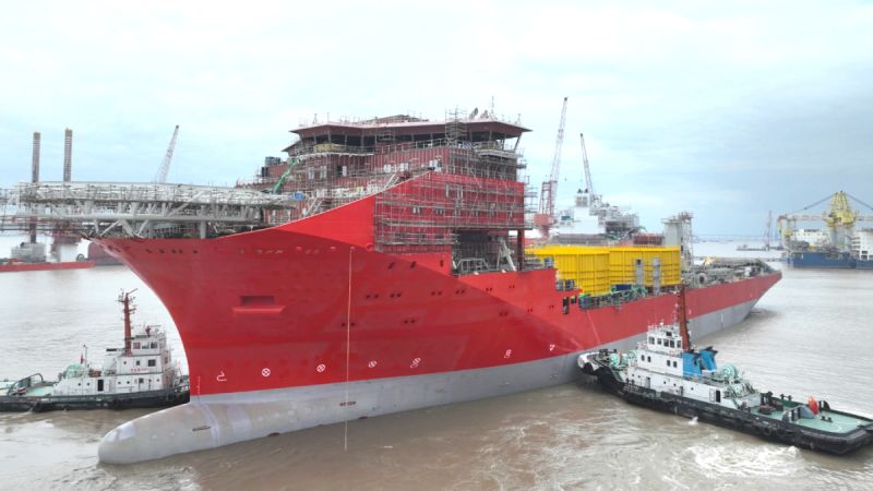 The launch took place by flooding the dry dock at the China Merchants Heavy Industry Haimen shipyard in China.