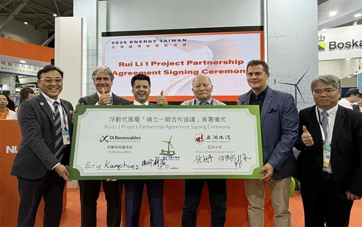 Asia Cement Corp has partnered with Netherlands-based IX Renewables to advance the 180-MW Rui Li 1 floating offshore wind project in Taiwanese waters.