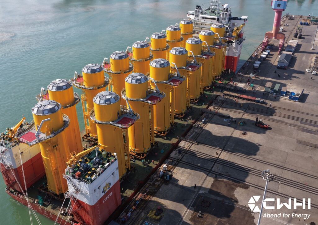 The TPs are loaded aboard the COSCO vessel Hua Sheng Long, marking a major project milestone and establishing CWHI as the first supplier from China to deliver fully commissioned Transition Pieces.