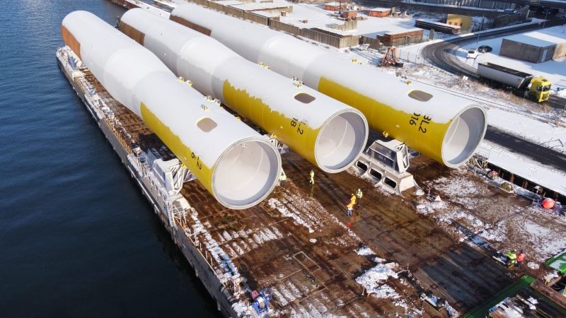 Ørsted reported that the load-out of the first batch of monopiles for the Baltica 2 project in Poland has been completed.