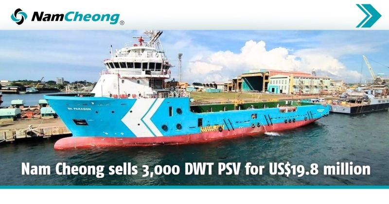 Nam Cheong has entered into a sales agreement to divest an 11-year-old 3,000 DWT Platform Supply Vessel (PSV) for US$19.8 million to an Indonesian customer.
