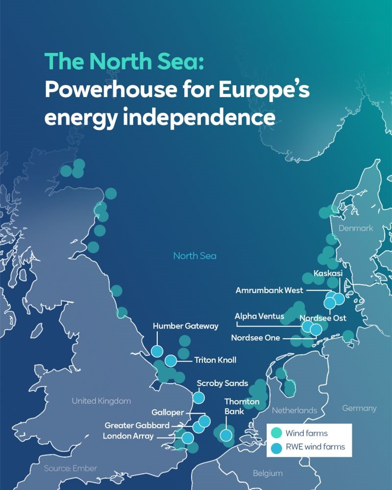 The North Sea is the largest offshore wind basin in the world, with 101 operational wind farms totalling 30 GW and a significant pipeline of projects under construction or in development, RWE’s CEO Sven Utermöhlen recently wrote on social media